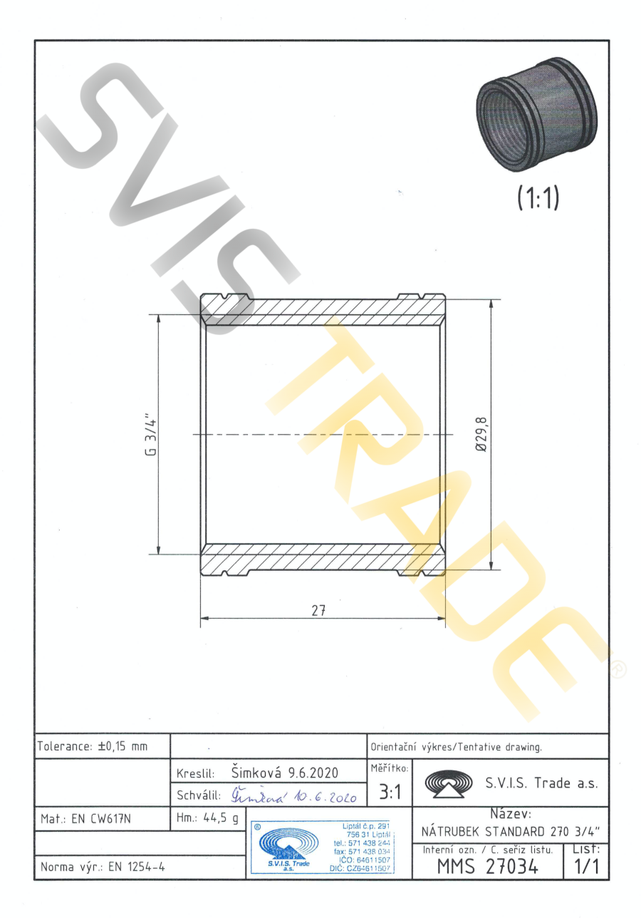 | Norme: | ČSN EN 1254-4, ČSN EN ISO 228-1 |
