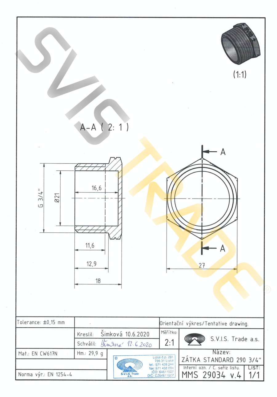 Filetul fitingurilor din alama,tip-dop cu hexagon,cu filetele tevii exterioare,fara tratament de suprafata.Conectarea filetelor G,sunt paralele pentru unirea(imbinarea) nu etansarea pe filete in conformitate cu ISO 228-1.Produse in conformitate cu EN 1254-4.