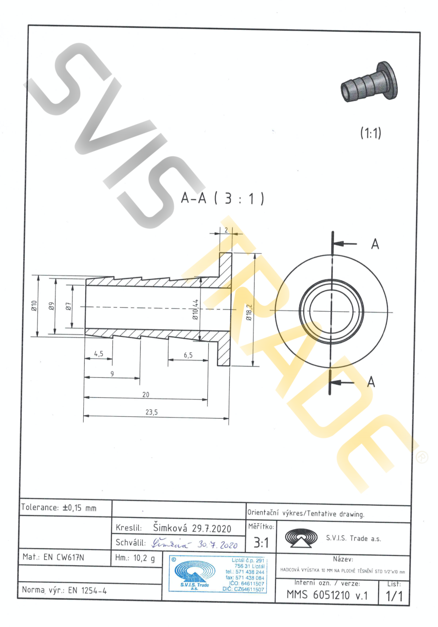 S.V.I.S. Comerț a.s. - producător ceh de accesorii este certificat ISO 9001, ISO 14001, OHSAS 18001. de fitinguri din alama sunt acoperite de asigurare pentru daune pe teritoriul UE.