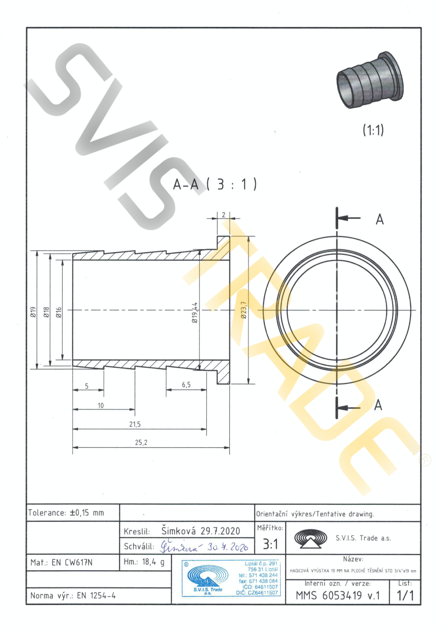 S.V.I.S. Comerț a.s. - producător ceh de accesorii este certificat ISO 9001, ISO 14001, OHSAS 18001. de fitinguri din alama sunt acoperite de asigurare pentru daune pe teritoriul UE.