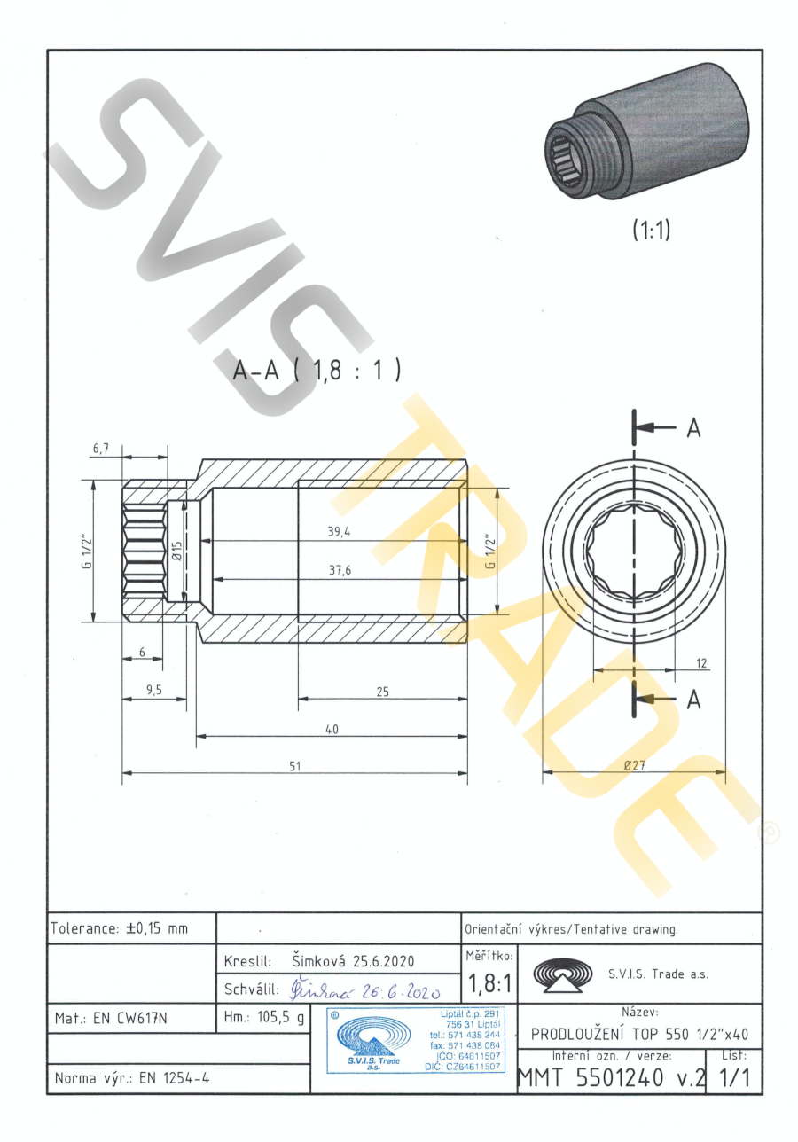 | Norme: | ČSN EN 1254-4, ČSN EN ISO 228-1 |