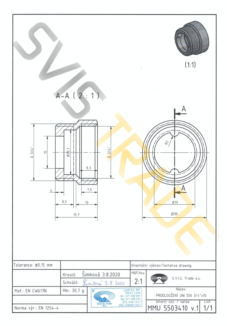 | Norme: | ČSN EN 1254-4, ČSN EN ISO 228-1 |