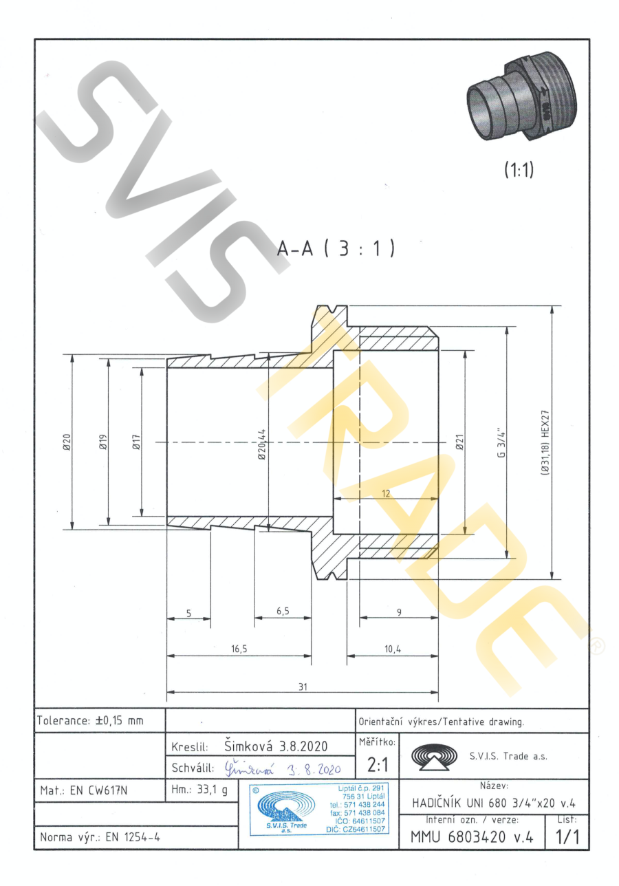 | Norme: | ČSN EN 1254-4, ČSN EN ISO 228-1 |