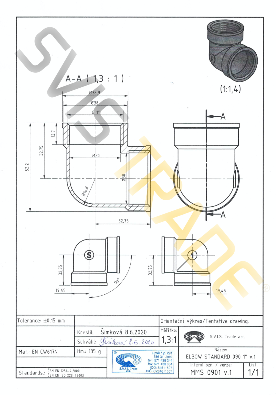 | Normy: | ČSN EN 1254-4, ČSN EN ISO 228-1 |