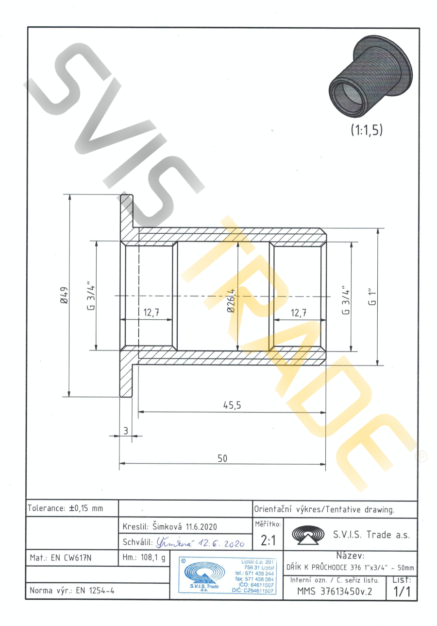 S.V.I.S. Trade a.s. - český výrobce fitinek je držitelem certifikátů ISO 9001, ISO 14001, OHSAS 18001. Na mosazné fitinky se vztahuje pojištění za škody pro území celé EU.