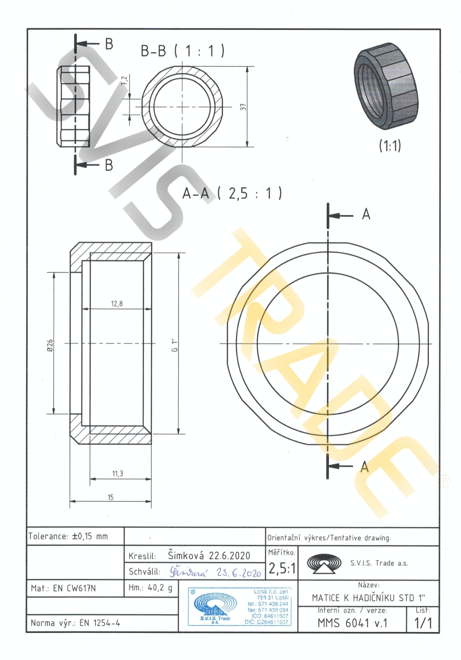 Tvarovka z mosadze CW617N. Určená pre spájanie so závitom ISO 228-1. Prevedenie: bez povrchovej úpravy.