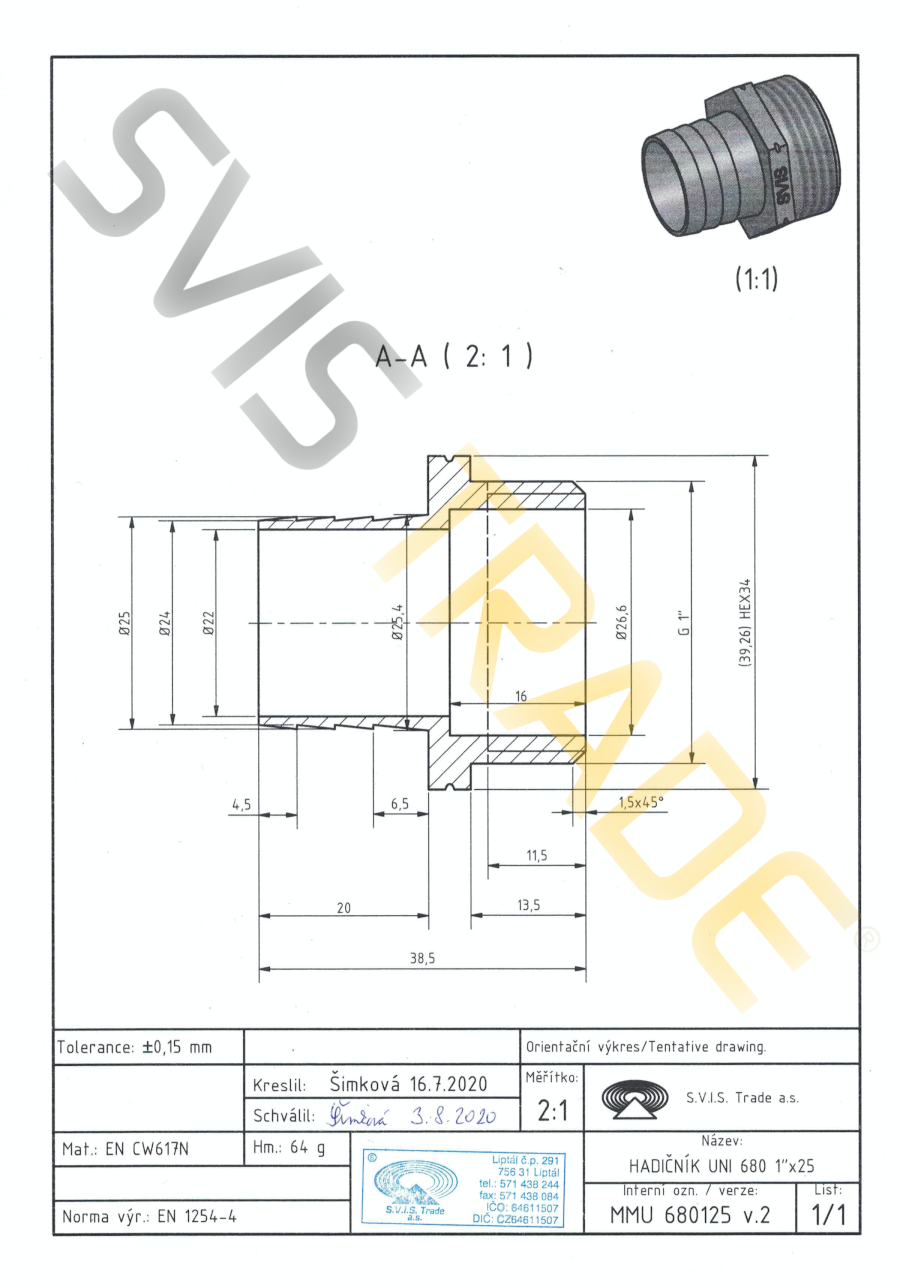 | Normy: | ČSN EN 1254-4, ČSN EN ISO 228-1 |